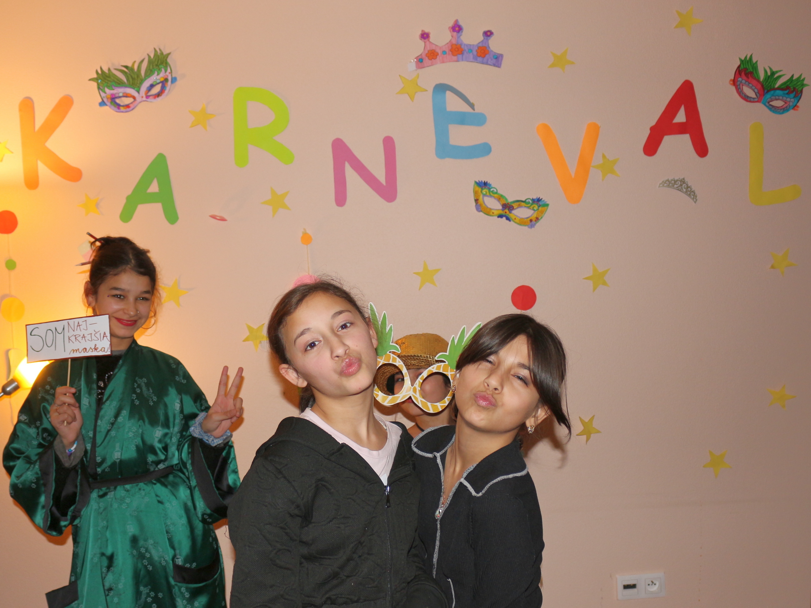 Už týždeň pred veselicou si začali vyrábať na stretkách masky. V deň karnevalu prišli dievčatá oblečené v rôznych kostýmoch. Potom začala príprava dievčat, ktorým pomohli staršie dievčatá a dobrovoľníčky sa nalíčiť a urobiť krásny účesy. Takto nachystané sa zišli vo veľkej karnevalovej sále, vyzdobenej balónmi a girlandami, ktorú pripravili dobrovoľníčky a staršie vedúce z rovesníckch skupín. Okrem toho spoločne napiekli aj šisky a koláče. „Mňam, tie boli výborné!“ Moderátorka Izabela vyzývala jednotlivé stretka aby predstavili svoje masky a potom začal „Bašavel“. O hudbu sa starala ako vždy Sofia. To bolo radosti! Dievčatá sa do sýta vytancovali a vyšantili počas tanečných súťaží. Po skončení karnevalu bola možnosť ísť na svätú omšu.