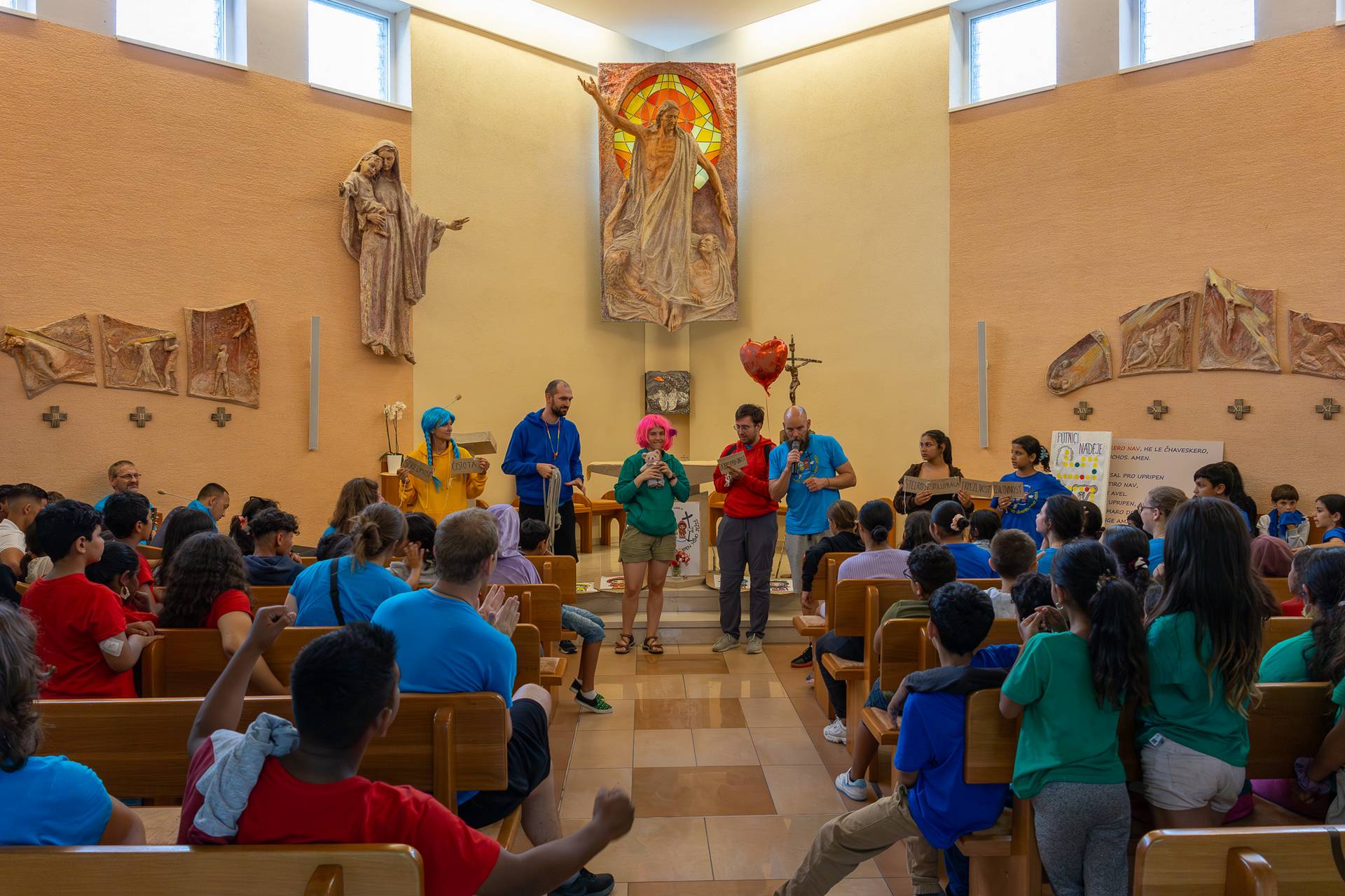Na tejto ceste nás sprevádzali štyri jubilejné postavičky: Luce, Fe, Sky a Xin. Každá z nich predstavovala dôležitý rozmer nádeje – svetlo, vieru, odvahu a radosť. Deti si ich hneď obľúbili a stali sa ich spoločníkmi na dennej ceste za čistým srdcom.