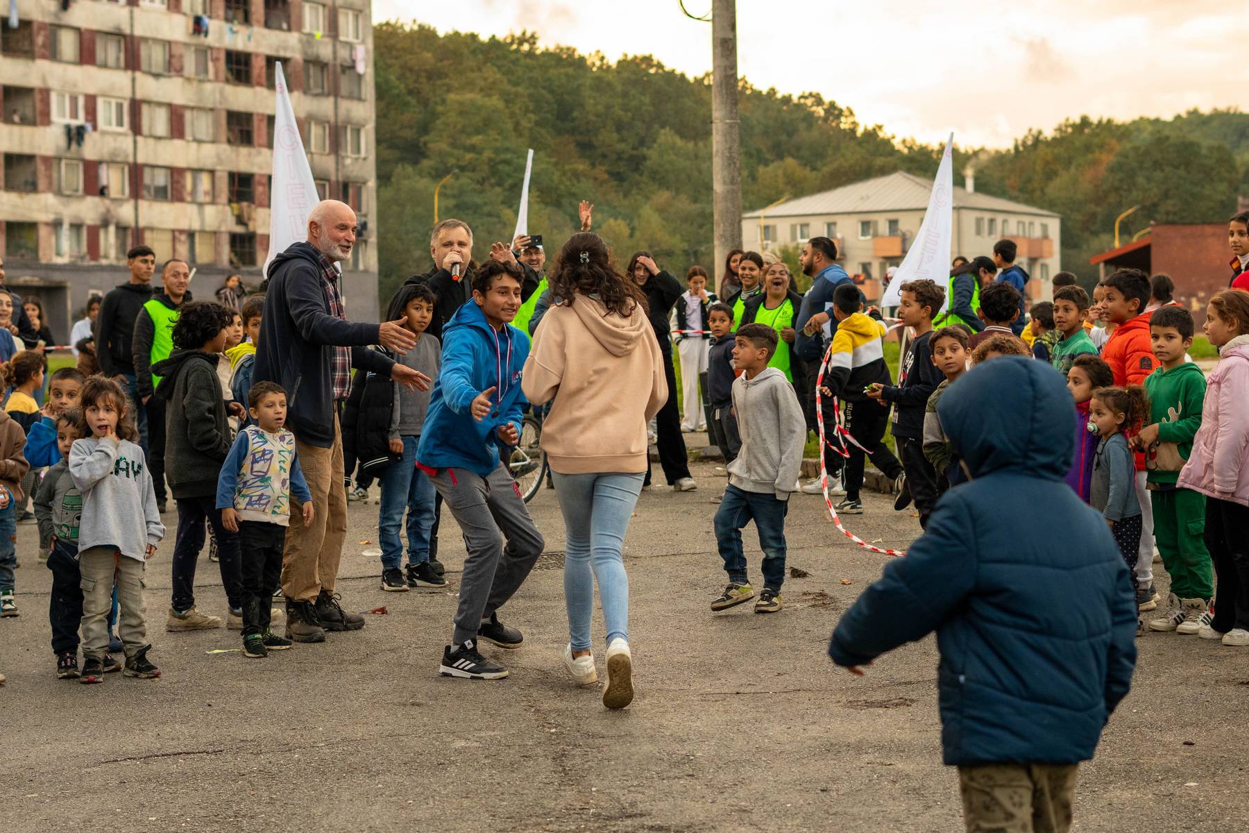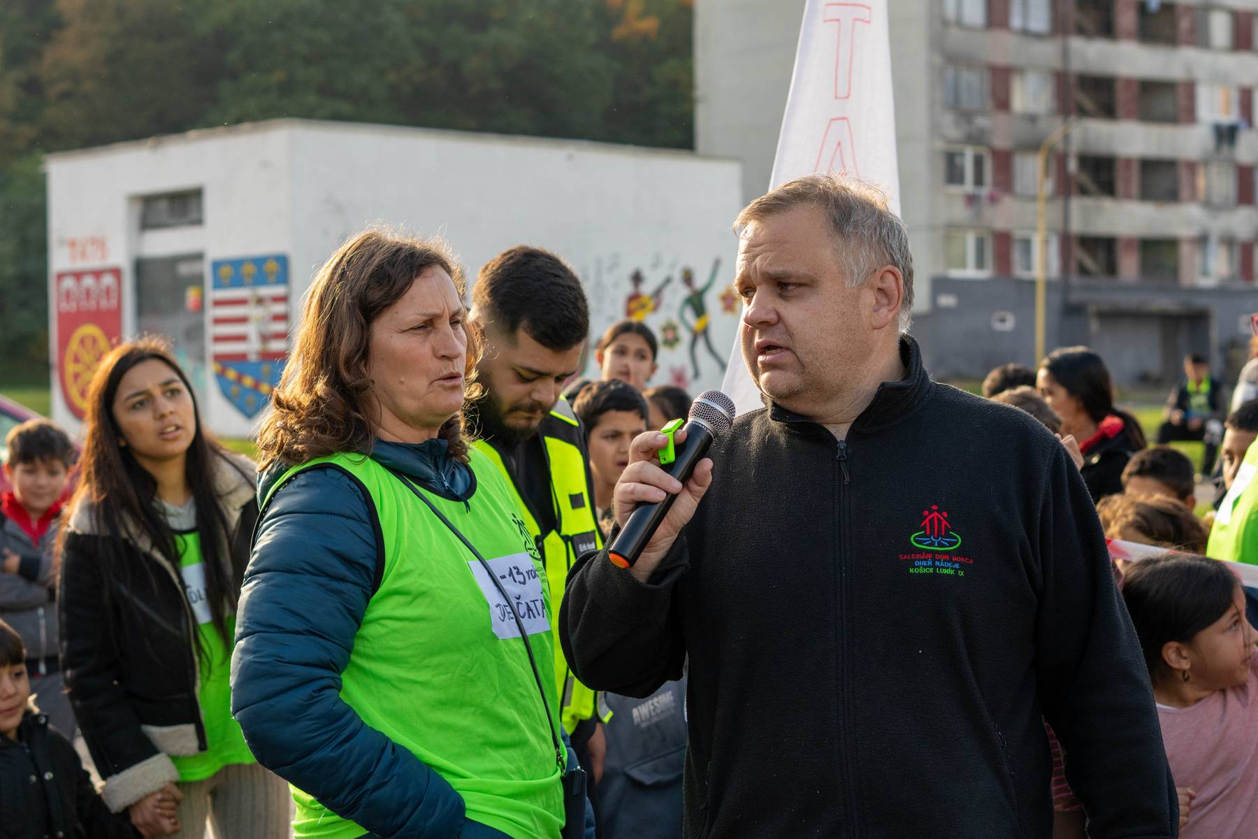 Potom, ako sa nám úspešne podarilo rozohnať tmavé daždivé mraky a pozvať k nám jesenné slniečko, sa začala registrácia bežcov. Dve stovky detí sa postavili na štart novej trate so začiatkom pred miestnym úradom. Organizátori v zložení členov OZ Oheň nádeje, množstva dobrovoľníkov, kolegov z ETP Slovensko a pomocníkov z MOaPS sa rozhodli, že všetkých sedem kategórii bude mať rovnakú dlhú trať: jeden a pol kilometrové kolečko okolo radovej bytovky na Krčméryho ulici.