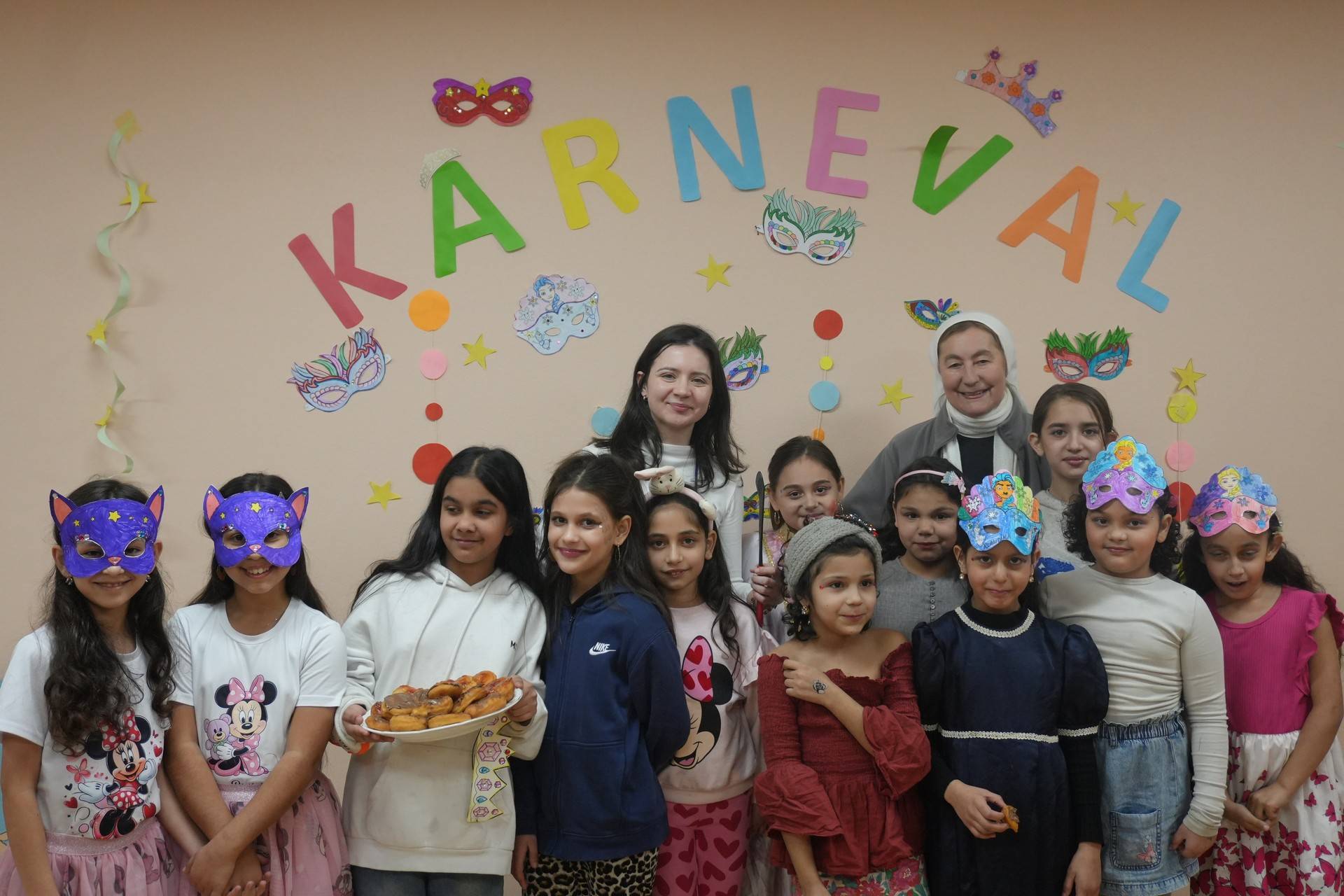 Karneval sa začal slávnostne svätou omšou. Potom sa dievčatá pustili do príprav masiek. Obliekali sa do rozmanitých kostýmov, navzájom si pomáhali s maľovaním a česaním. Keď boli pripravené, každé stretko sa predstavilo vo svojich kostýmoch. Počas voľnej zábavy si dievčatá s chuťou zatancovali aj zasúťažili a radosť naplnila celú miestnosť. Voňavé šišky a koláčiky, ktoré si staršie dievčatá napiekli, potešili všetky a dodali energiu na ďalšiu zábavu. Dievčatá odchádzali domov radostné a plné pekných spomienok.